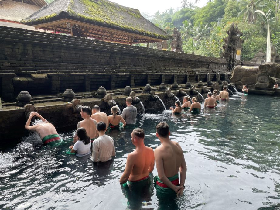 It’s extremely common to see Westerners in this pool because the ritual is open to anyone, many tourists want a spiritual experience rather than just sightseeing, and the mix of locals and foreigners symbolizes how Balinese spirituality is inclusive and welcoming.