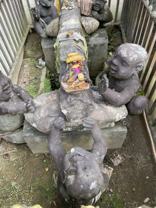 Balinese Guardian Figure or a Mythological Scene meant to protect the village. These statues forms are strategically placed at entrances to intimidate and ward off actual evil spirits from entering the sacred space. They symbolize the raw power necessary to protect the purity of the village.