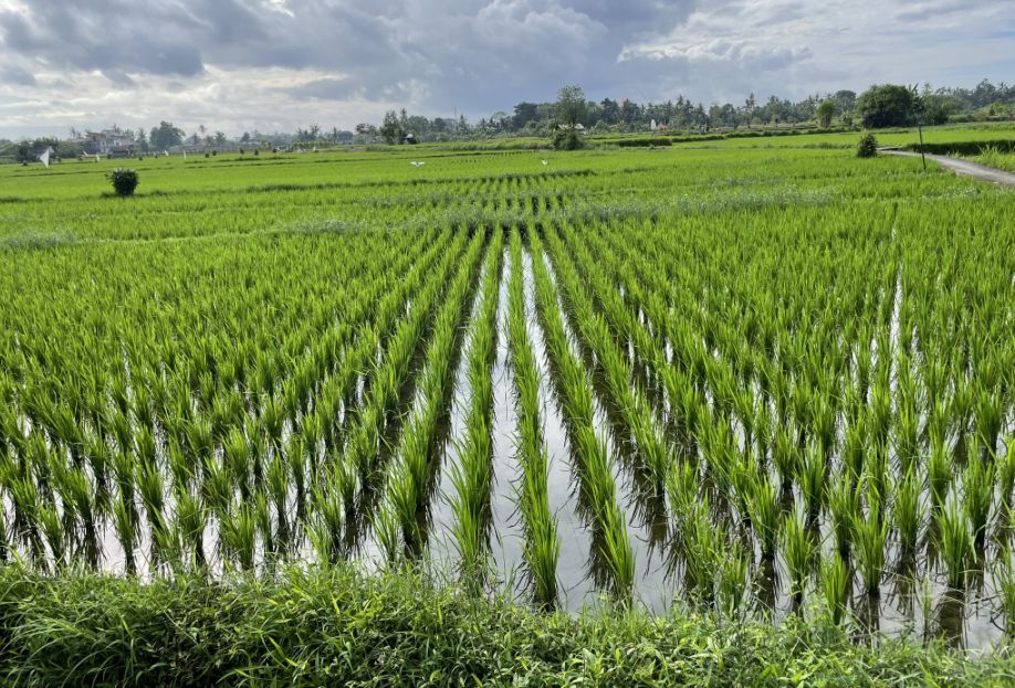 The horizon stretching out quietly, giving you that timeless countryside feeling. It’s such a peaceful contrast to the commercial bustle of places like Tegalalang—real farming land, real birds, real life happening slowly.