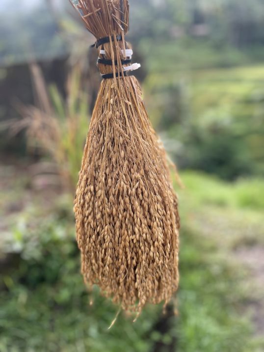 Instead of the buzz of people lining up for swings and photo props, we were suddenly surrounded by the softer, more grounded side of Tegalalang: narrow dirt paths winding between the terraces, and the rustling of rice stalks swaying in the breeze.