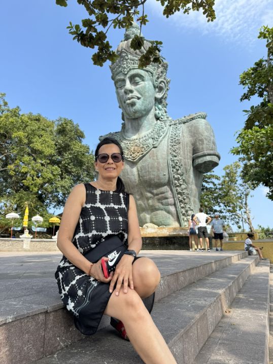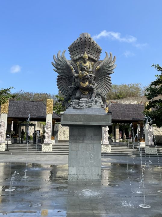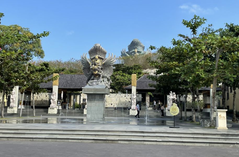 Garuda Wisnu Kencana (GWK) Cultural Park covers about 148 acres and sits on a high plateau in Ungasan, Badung, giving a sweeping views of Bali. It’s a cultural destination, not just for sightseeing but for performances, art, and Balinese mythology. The park is designed to showcase the grandeur of Indonesian culture. At the entrance, we are greeted by a smaller, miniature version of the Garuda Wisnu Kencana statue watching over the grounds, is the perfect start to exploring this unique site!