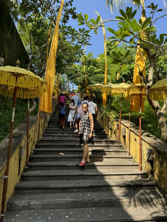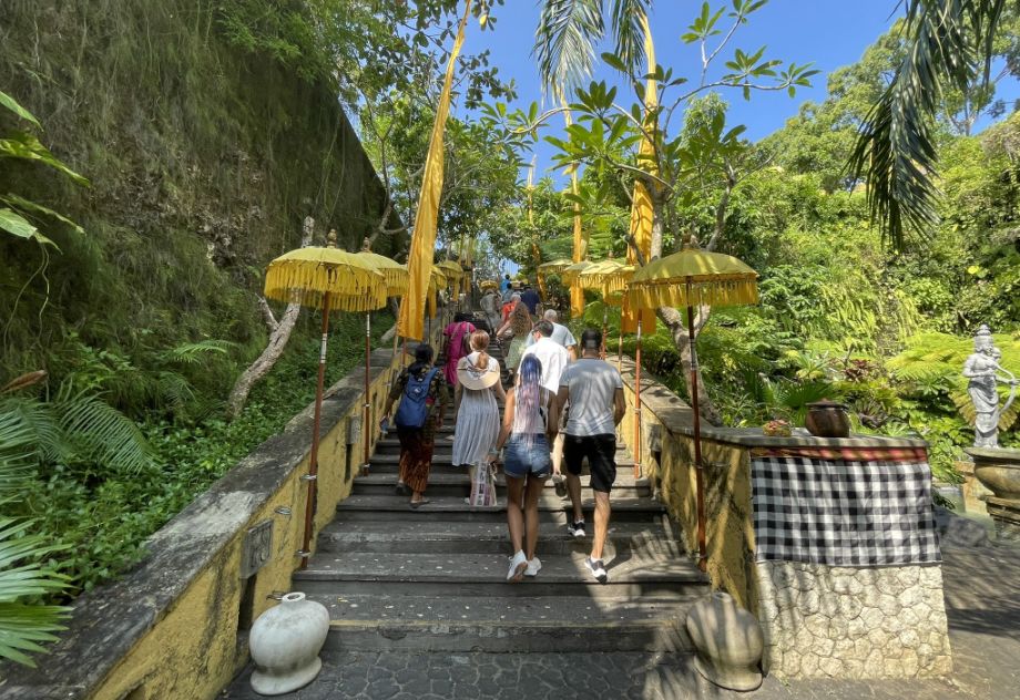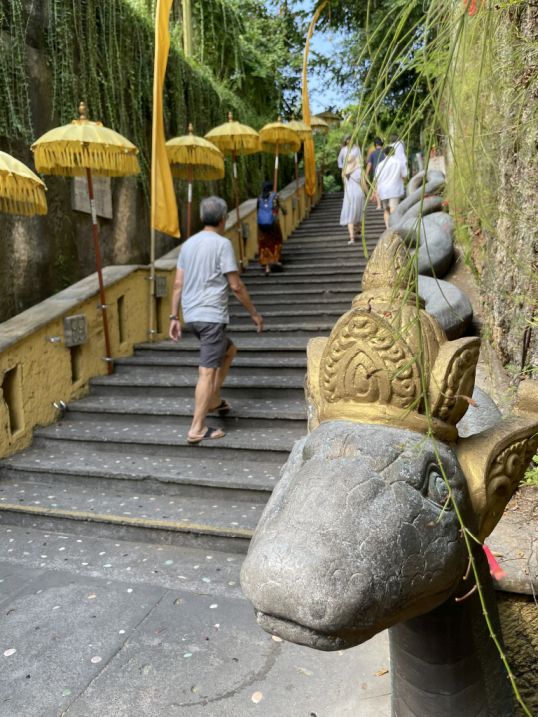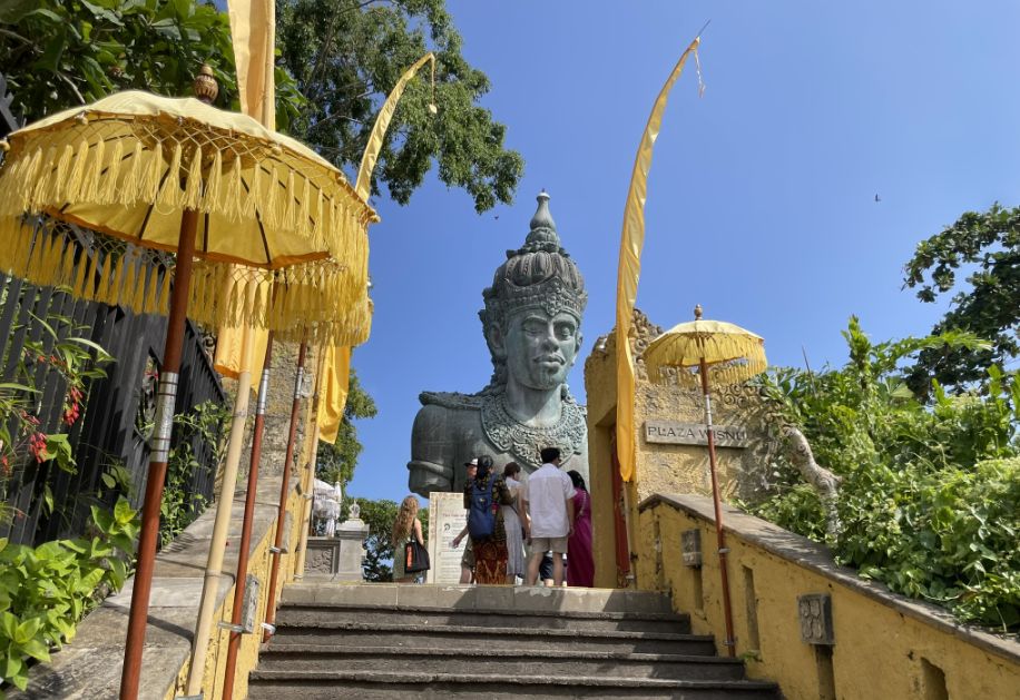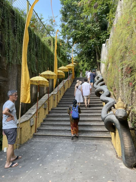 As we climbed toward the Garuda Wisnu Kencana statue, the pathway transformed into a bright, ceremonial staircase.