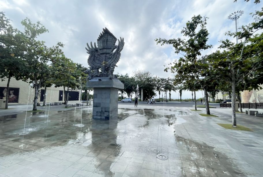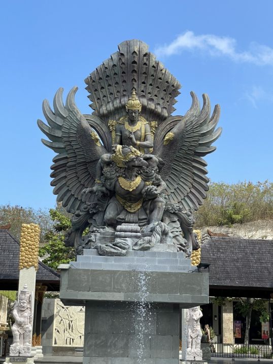 The miniature statue serves a few purposes: It gives visitors a symbolic welcome into the park, hinting at the mythological grandeur inside, and it represents the artistic vision of I Nyoman Nuarta in a more accessible size, showing the harmony between Vishnu and Garuda