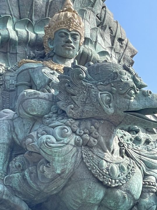 The closer you get, the more you can see the details, Garuda’s feathers, Vishnu’s crown, and the ornate armor