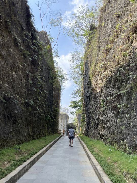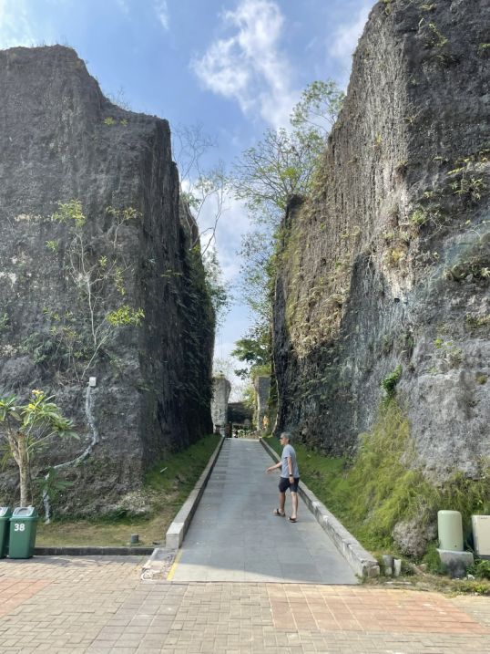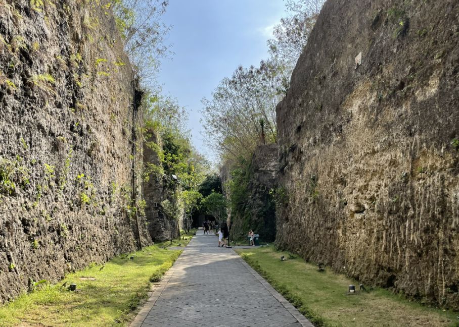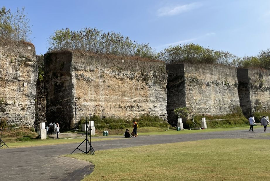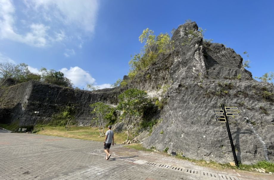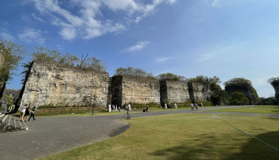 The Bukit Peninsula, where GWK sits, is made of ancient coral limestone formed millions of years ago when the land was still underwater. When the area was quarried, huge sections of rock were cut away, leaving behind sharp vertical surfaces. The exposed limestone shows layers of fossilized coral, shells, and natural textures , a reminder of Bali’s geological past.