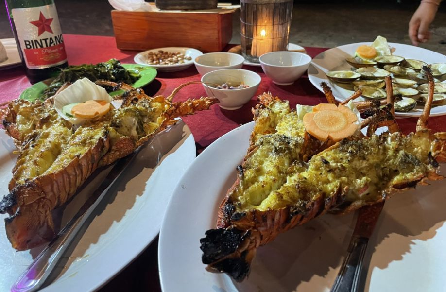We got 2 Lobsters, clams, and morning glory, which are some of their most typical dishes, all classic items on the Bali seafood menu.