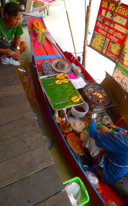 Squid on a stick. You point to the squid you want and the vendor will put it on the grill.