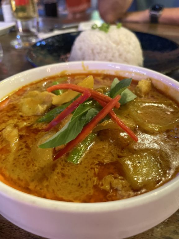 I ordered Amok which is the national dish in Cambodia. It is a fragrant and spicy coconut fish curry that is usually steamed in banana leaves and served with rice.