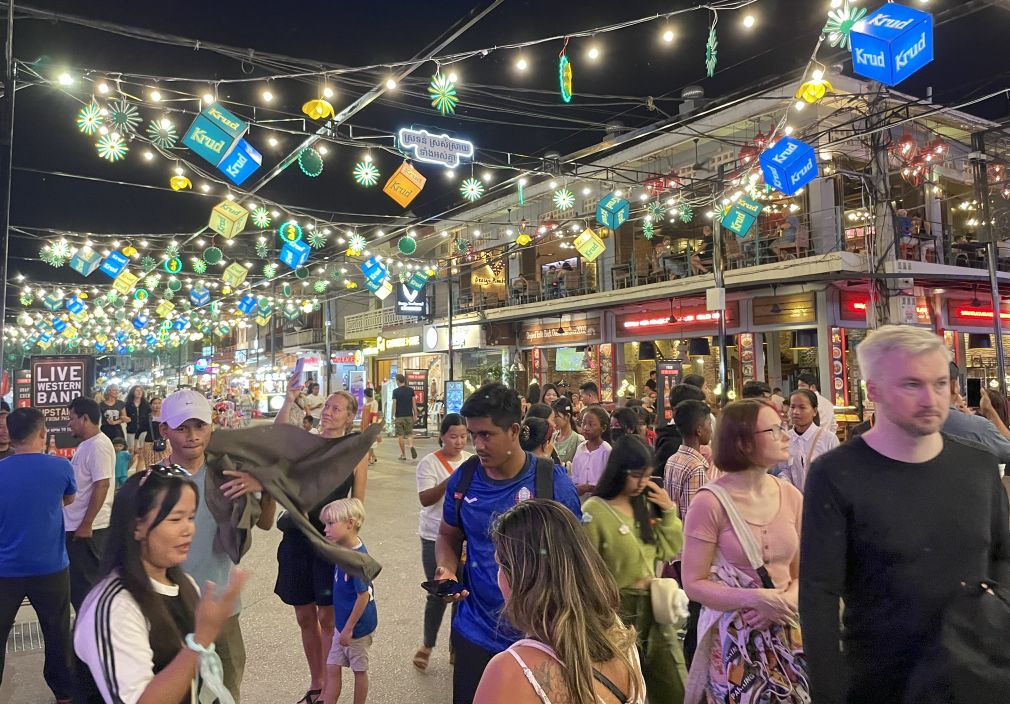 During the day it is a regular road but at night time the road is blocked off to traffic and becomes a pedestrian street which is very safe to take a stroll.