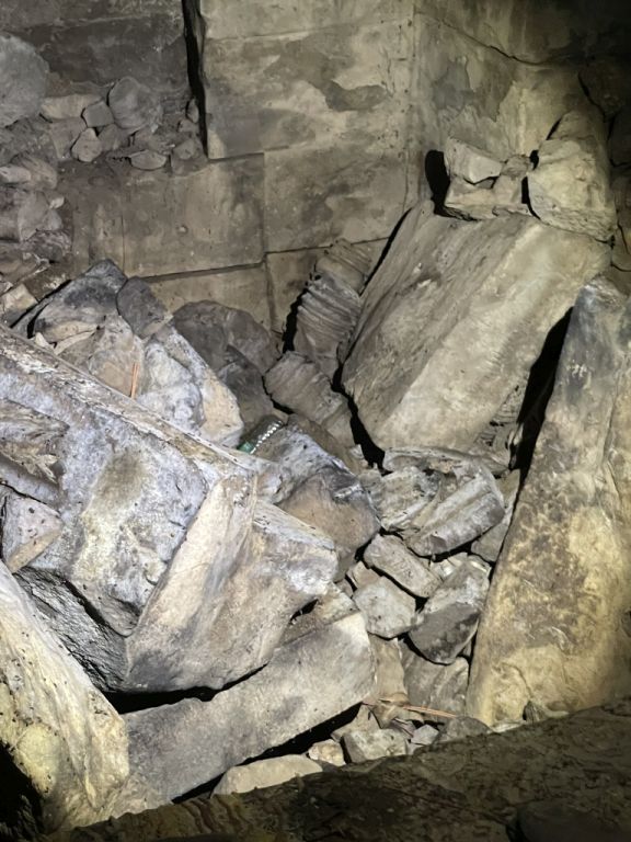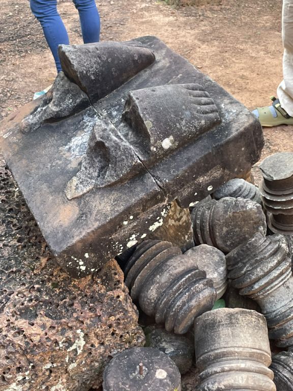 On the left is a pile of balusters for windows decoration and on the right is a block with broken feet sculpture.