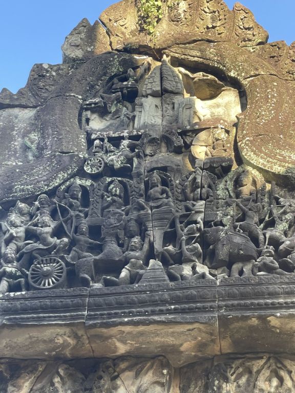 The central sanctuary is closely surrounded by two enclosures with richly decorated gopuras, and the reliefs are of varying types as you move in towards the center.