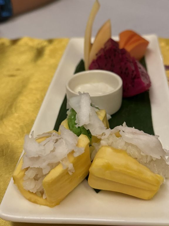 For dessert we ordered sticky rice with assorted fruits and coconut sauce.