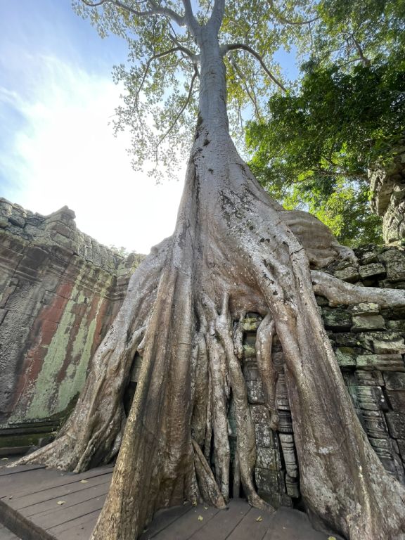 This is a Tetrameters Nudiflora, native of South East Asian and its sprawling roots and majestic canopies it feels like it stand sentinel over this ancient temple: