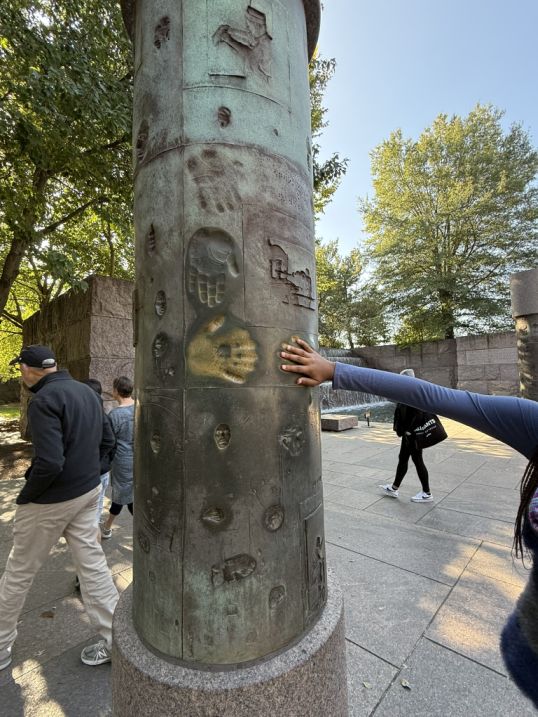 We boarded the bus, the city slowly sliding past our windows, and before long we arrived at our first stop: the Franklin Delano Roosevelt Memorial and the Martin Luther King, Jr. Memorial.