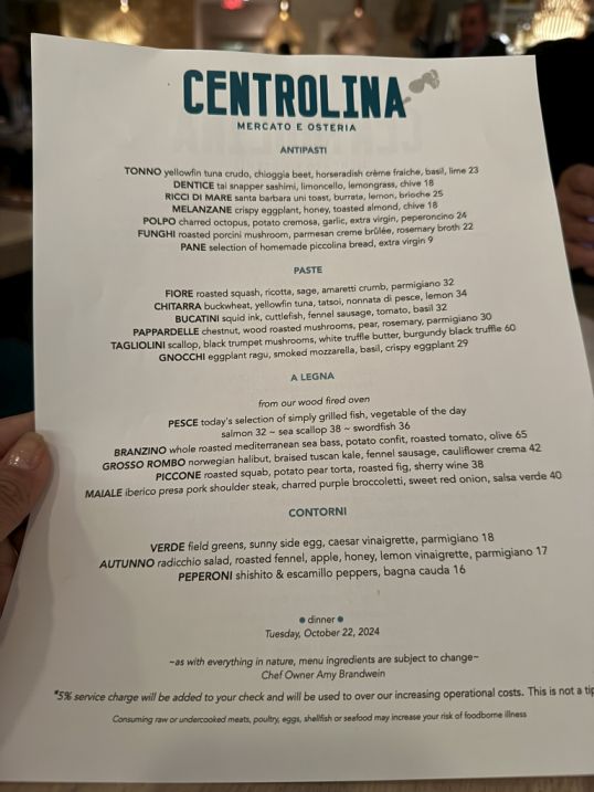 We are heading to Centrolina restaurant for dinner tonight. Centrolina has been a Michelin Guide–recommended restaurant (often called a Michelin Plate or Selected Restaurant), meaning inspectors highlight it for high-quality cooking and consistency. While it does not currently hold a Michelin star, it is widely respected locally and frequently appears on “best restaurants in D.C.” lists. Chef Amy Brandwein has earned strong recognition for ingredient-driven Italian cuisine and thoughtful execution. Many diners actually appreciate that it feels less formal than starred restaurants while still delivering Michelin-level quality and creativity.