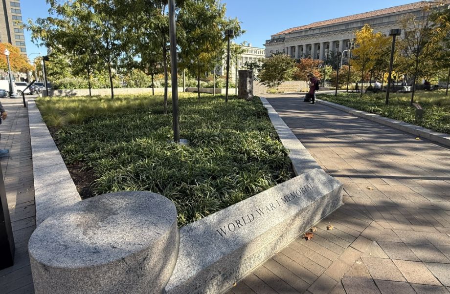 For many years, World War I did not have a prominent national memorial on the Mall. This site was redesigned and rededicated in 2021, finally giving the war a central commemorative space.