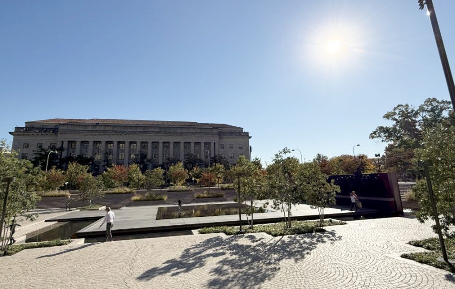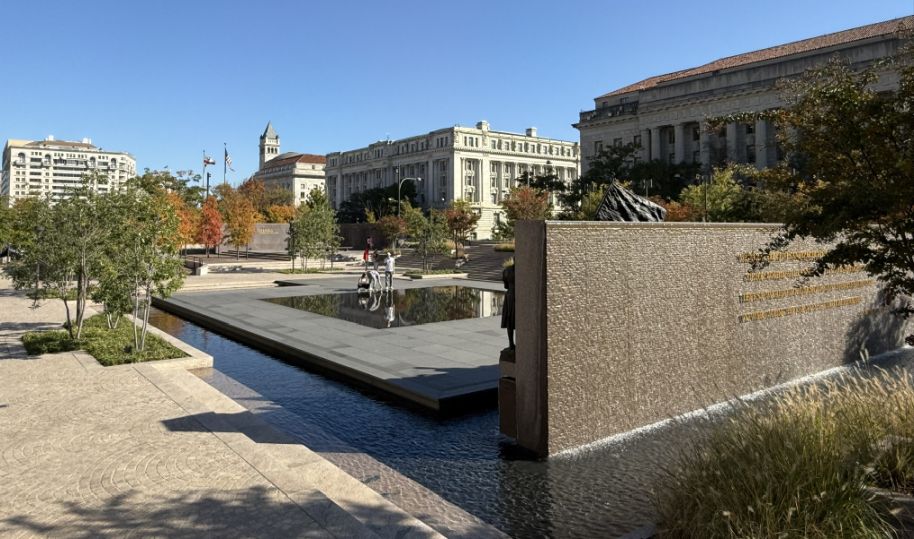 After crossing the street, we arrived at the World War I Memorial, located in what was historically called Pershing Park, but was transformed into a modern remembrance space.