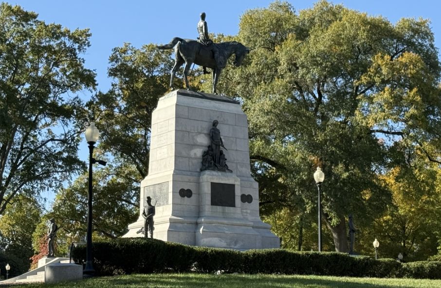 Along the way, we came upon The General William Tecumseh Sherman Monument. Created by renowned sculptor Augustus Saint-Gaudens and dedicated in 1903, the monument shows: Sherman riding confidently on horseback.