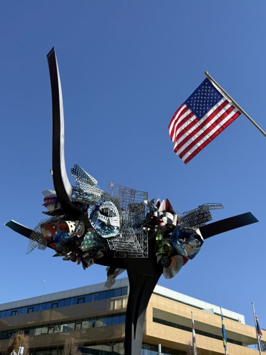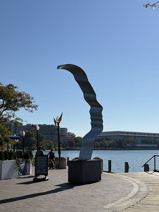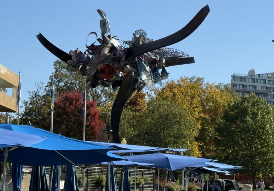 The statue is weighing 28 tons and measuring 41 feet tall. It is Overlooking the Georgetown Waterfront, the sculpture behind Sequoia restaurant features an assemblage of unique, sculpted organic forms brought together in a nest-like composition. According to the artist, the piece was inspired by both femininity and the Scarlet Oak tree, rooted in the history of DC, and reinforcing the cultural link between civic symbolism and natural imagery. Quinz says it’s a statement on modern culture’s loss of connection with nature.