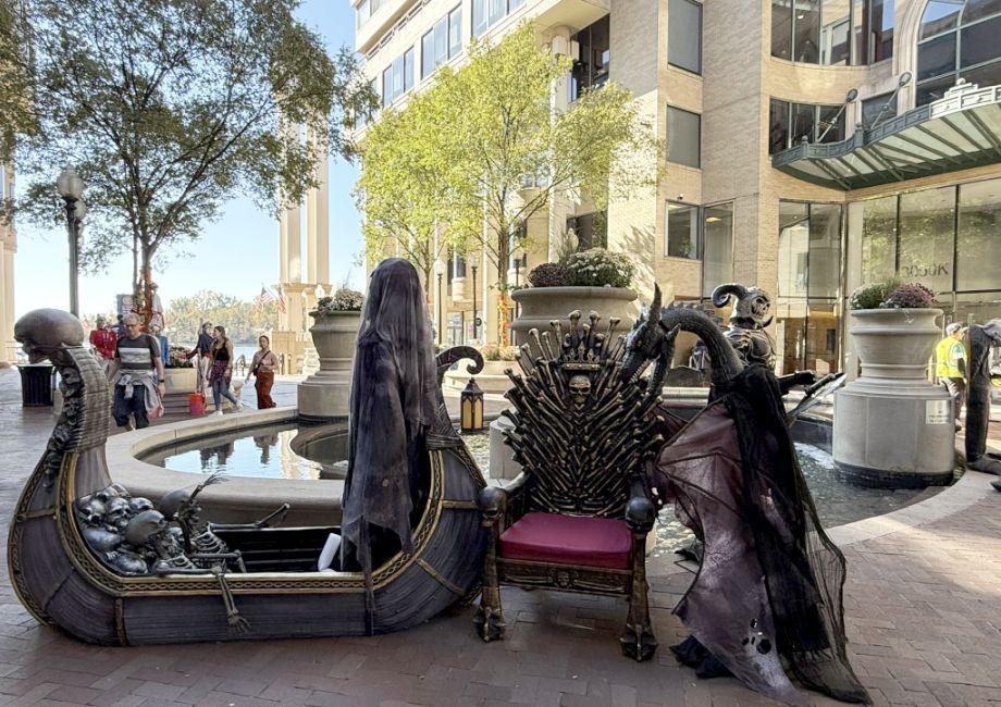 Washington Harbour has become famous in recent years for its incredibly detailed and thematic Halloween decorations. They often create large-scale, immersive scenes that draw crowds.