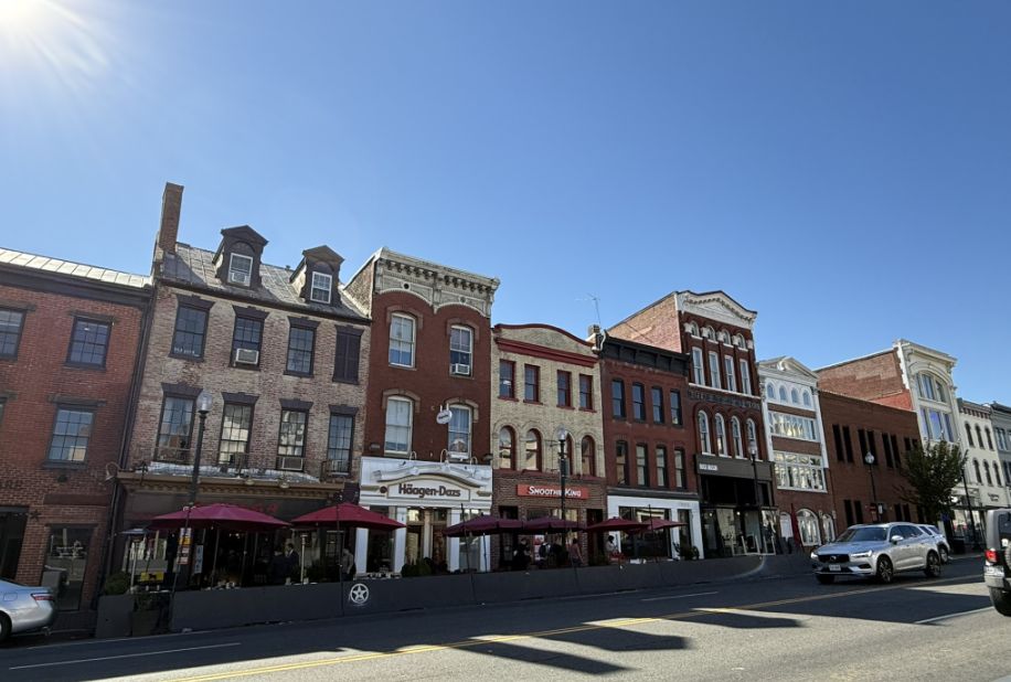 Most of the brick buildings lining M Street date from the late 18th and 19th centuries, when Georgetown was an independent port town before Washington, D.C. fully developed. Originally, many of these buildings had shops or warehouses on the ground floor and living quarters above. Merchants, ship captains, and craftsmen lived and worked here when the nearby canal and harbor were busy trade centers. These buildings are protected within the Georgetown Historic District, which means strict preservation rules keep the neighborhood’s scale and character intact. That’s why you don’t see skyscrapers here,