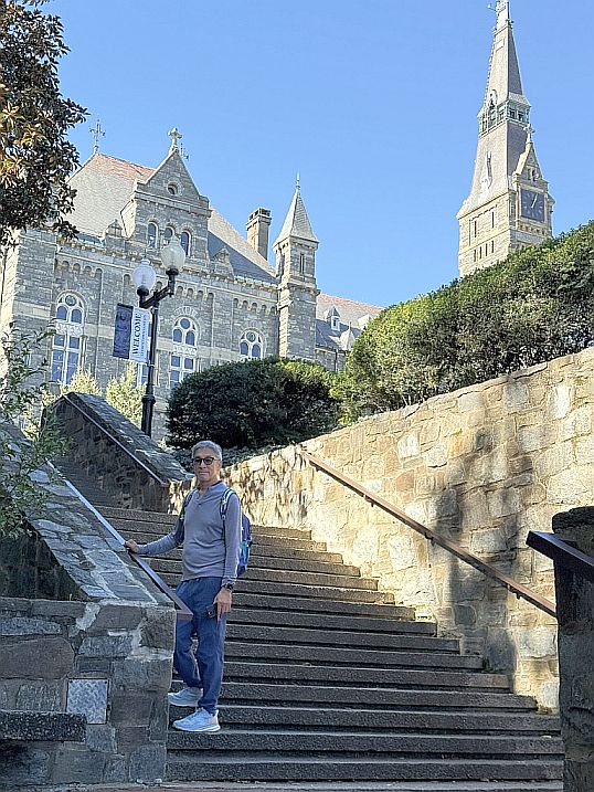 Walking around the University's campus. In autumn, the red and copper leaves echo the tones of Georgetown’s historic brick buildings, making the architecture feel naturally connected to the landscape.