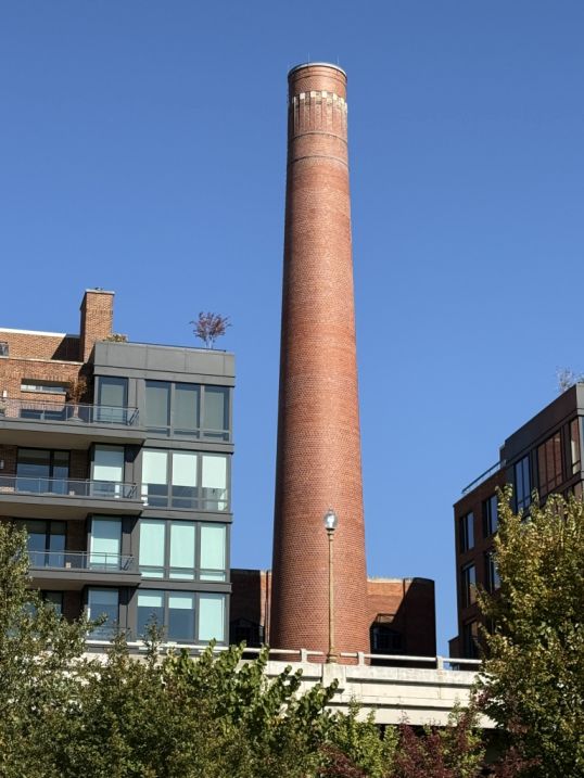 Historic Landmark: The tall brick chimney is a prominent and historic landmark in Georgetown. It's truly a relic from an earlier industrial era. Original Purpose: It was originally built in 1910 as part of a power plant for the Capital Traction Company, which operated Washington D.C.'s streetcar system. The plant generated electricity to power the city's streetcars.
