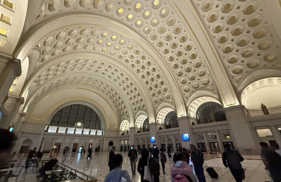 We were so shock to see how beautiful the Washington Union Station. Opened in 1907 and designed by the legendary architect Daniel Burnham, it was built to be a monumental "city within a city" that would match the grandeur of the nation's capital. Burnham drew inspiration from classical Rome, specifically the Baths of Diocletian and the Arch of Constantine. This "Beaux-Arts" masterpiece was intended to impress travelers the moment they stepped off the train, featuring white granite, massive archways, and a Main Hall so large that the Washington Monument could nearly fit inside it if laid on its side.