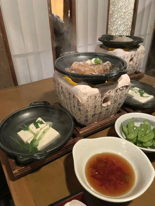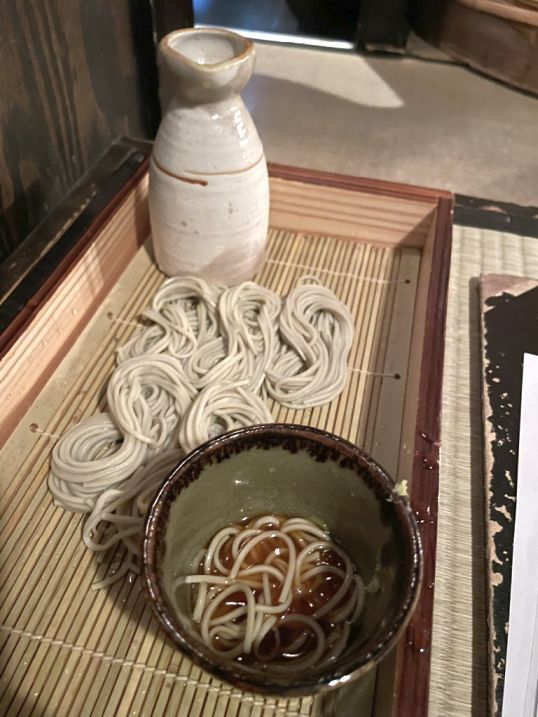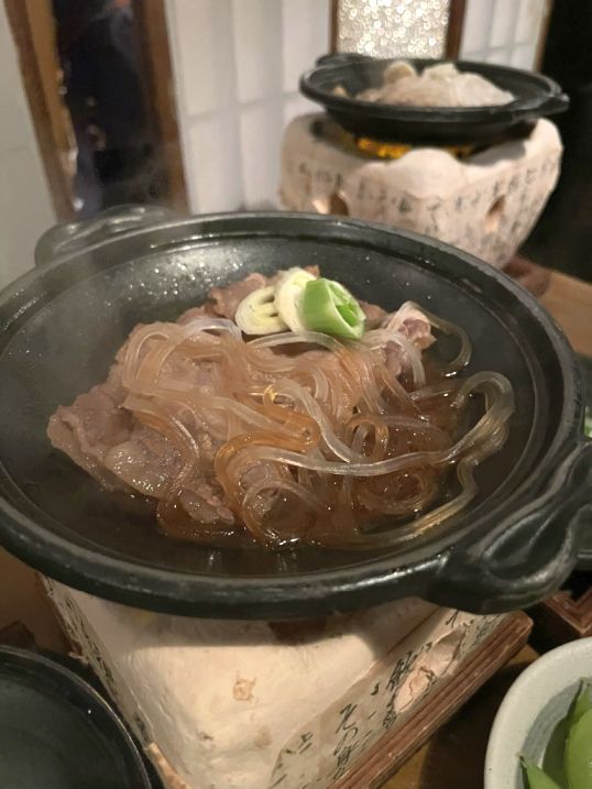 Inside the earthen pot we each got a soft tofu with some greens, and the on the second pot with got glass noodle with Murakami beef which is the local premium wagyu known for being incredibly tender. The beef was cooked in a Warishita which is a rich blend of soy sauce, sugar, and mirin (sweet rice wine). Since Niigata is a top producer of both soy sauce and sake, the sauce there is often deeper and more complex than elsewhere in Japan.