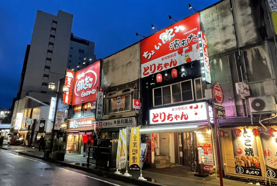 In the evening, we headed into downtown Niigata for dinner at Echigo Banya Sakaba, a small local spot tucked near a 7-Eleven. If you didn’t know what you were looking for, you could easily walk past it.