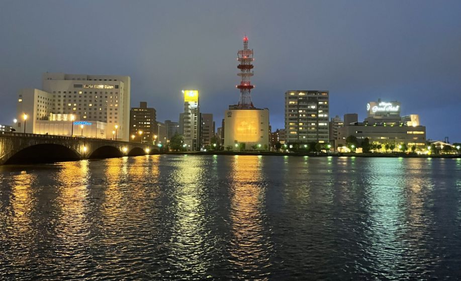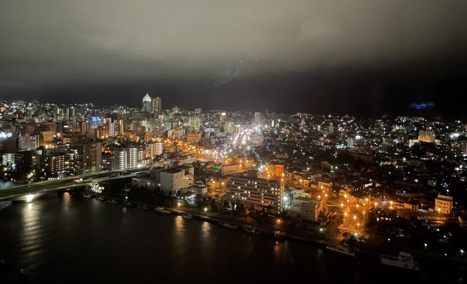 What an incredible way to end the day! Being on the 25th floor in Niigata gives a spectacular "birds-eye" perspective of the city's unique layout where the massive Shinano River meets the Sea of Japan.