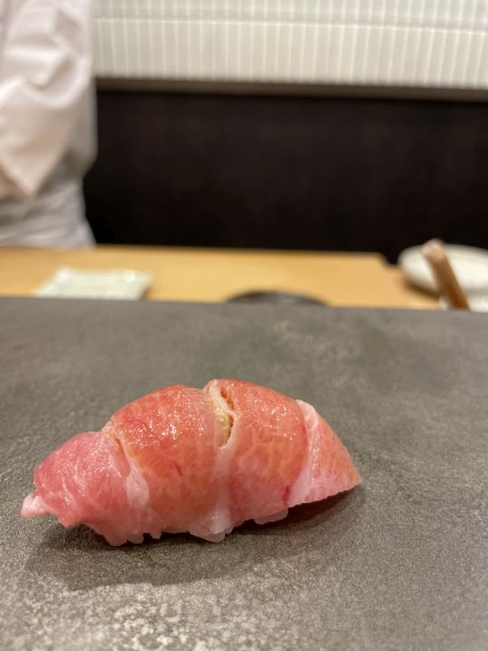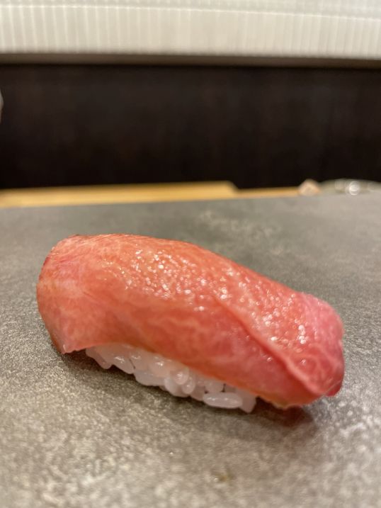 The first sushi we were served was likely hamachi, clean and delicate, with a soft, buttery texture. The flavor was mild and slightly sweet, almost melting on the tongue, a gentle and perfect way to begin the meal.