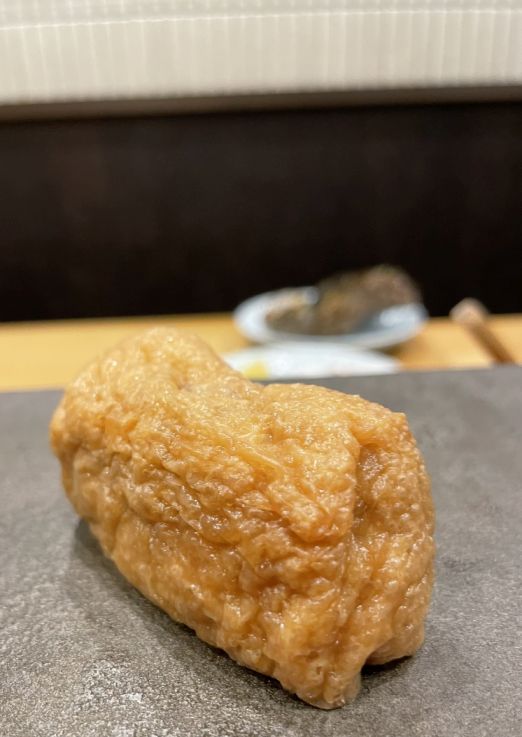 After the dessert, he served us inarizushi which is tofu skin delicately stuffed with rice, soft, lightly sweet, and comforting.