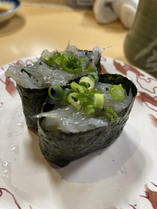 In the evening we walked over to Benkei Pier Bandai, a popular kaiten-zushi (conveyor-belt sushi) restaurant near the pier that’s become well-known in Niigata for its fresh seafood and casual, fun atmosphere.