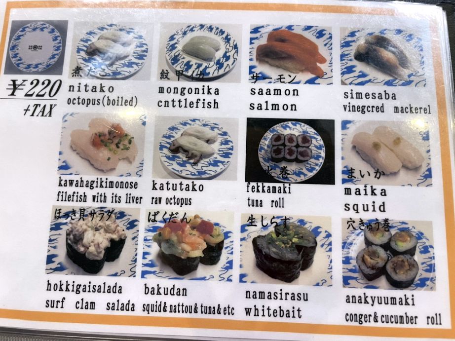 We were also given a menu, in case we want to order something that is not on the converyer belt. I am shocked to see that all the dishes below are 220 yen =$1.50 (yes, you read correctly).