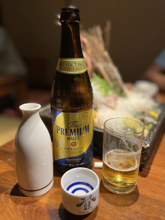 We ordered beer and sake.