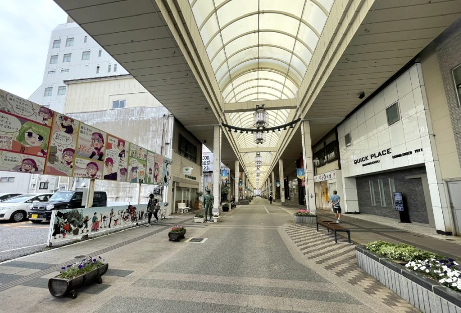 We are now inf front of the Japan Animation & Manga College (JAM). While it is a vocational school for aspiring artists, its ground floor often looks like a shop or gallery because it is a major landmark in Niigata’s "Manga Island" district.
