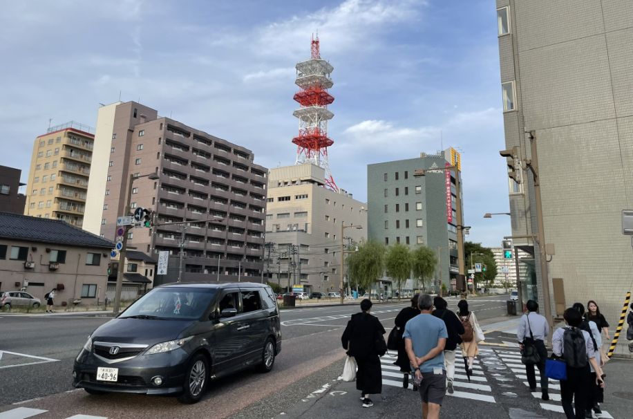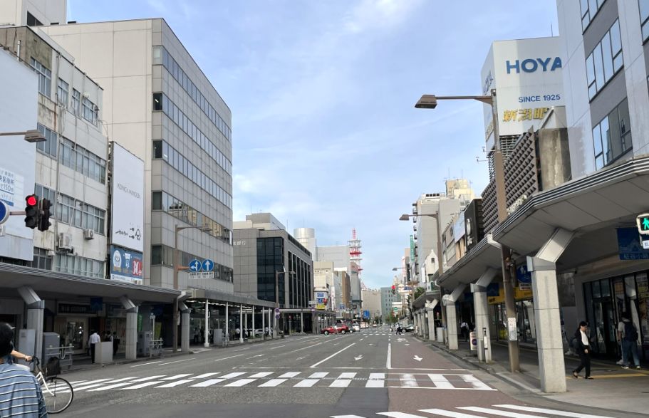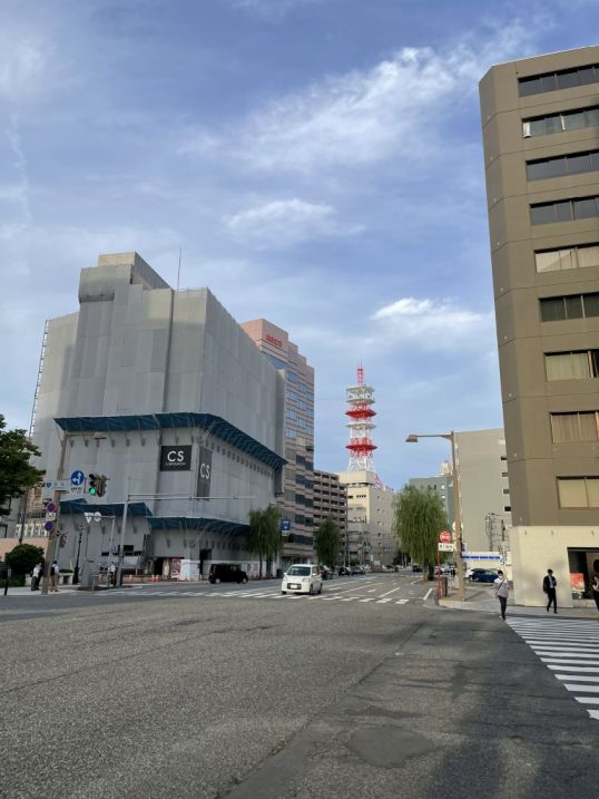 We are now walking on Route 7 and ahead is the NHK Niigata tower.
