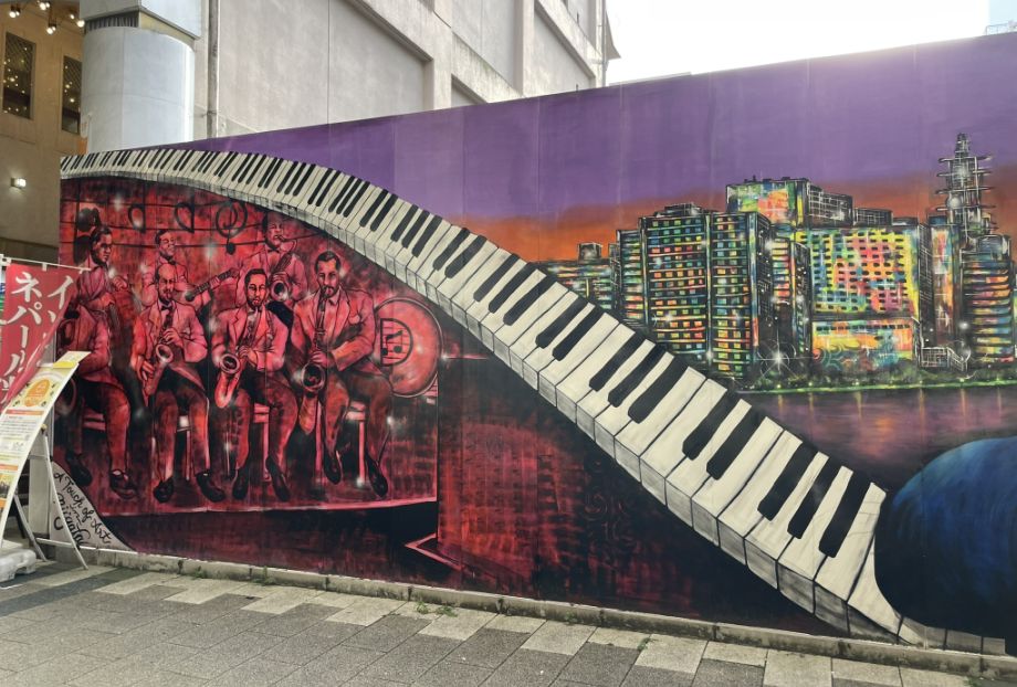 This mural captures the legendary jazz musician Duke Ellington, and its presence on Furumachi-dori is a tribute to a deeply moving moment in Niigata's history.
