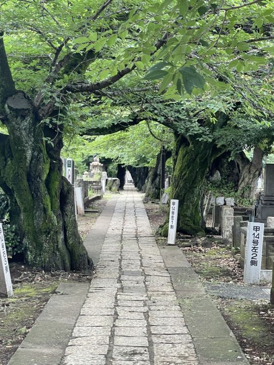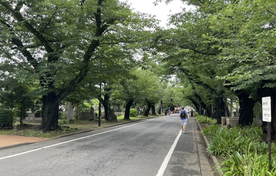 Walking through Yanaka Cemetery doesn’t feel dark or heavy. Instead, it feels peaceful and spacious, like a park where memory lives quietly among trees and stone.