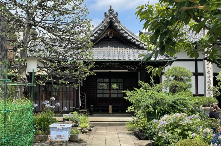 Like many temples in this area, it is tucked tightly between modern residential buildings and local businesses, showing how integrated these spiritual spaces are with everyday life in the Yanaka district.