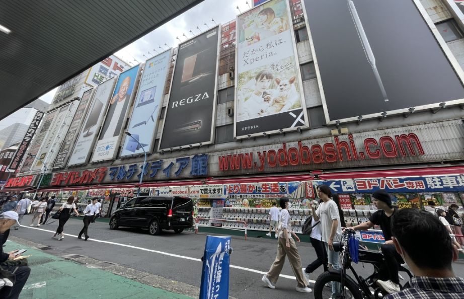 Across the road stood the giant FUJIYA Camera store, its bold sign shining like a landmark for anyone navigating the chaos of Shinjuku.