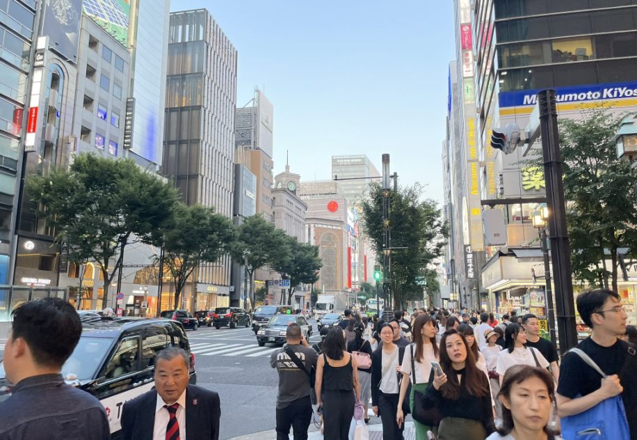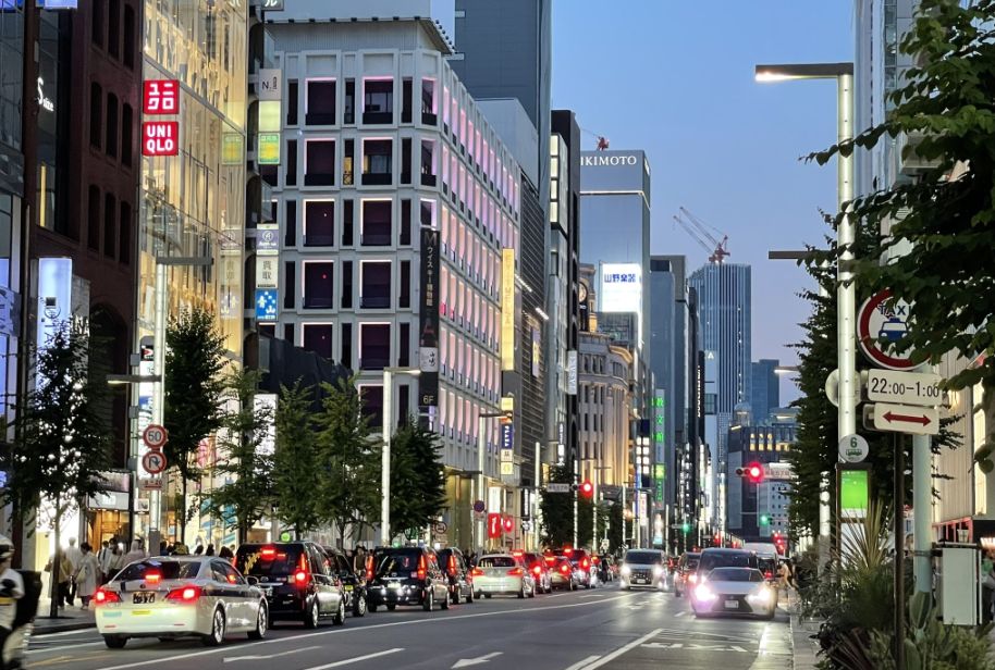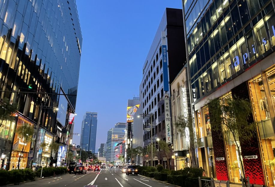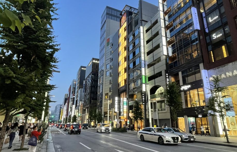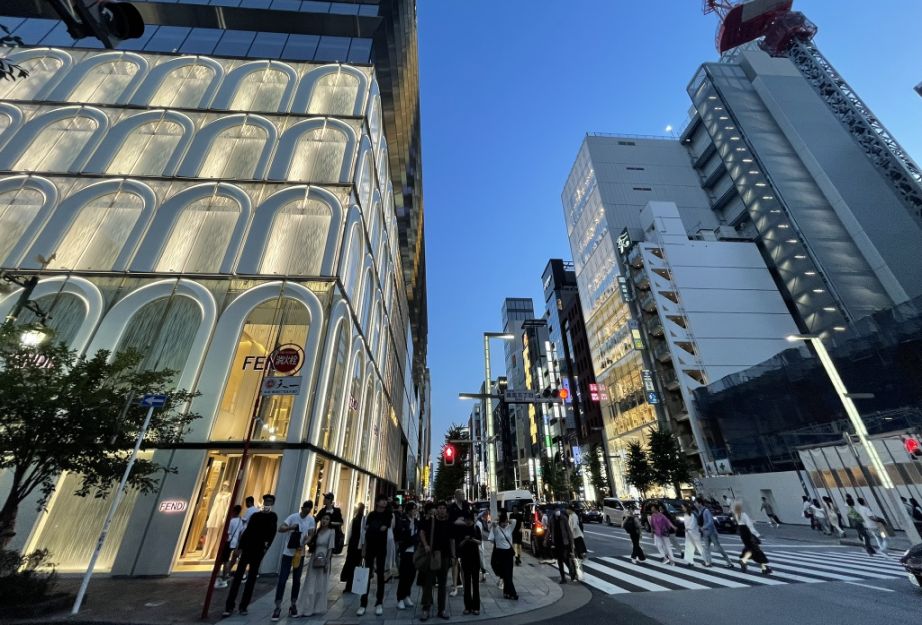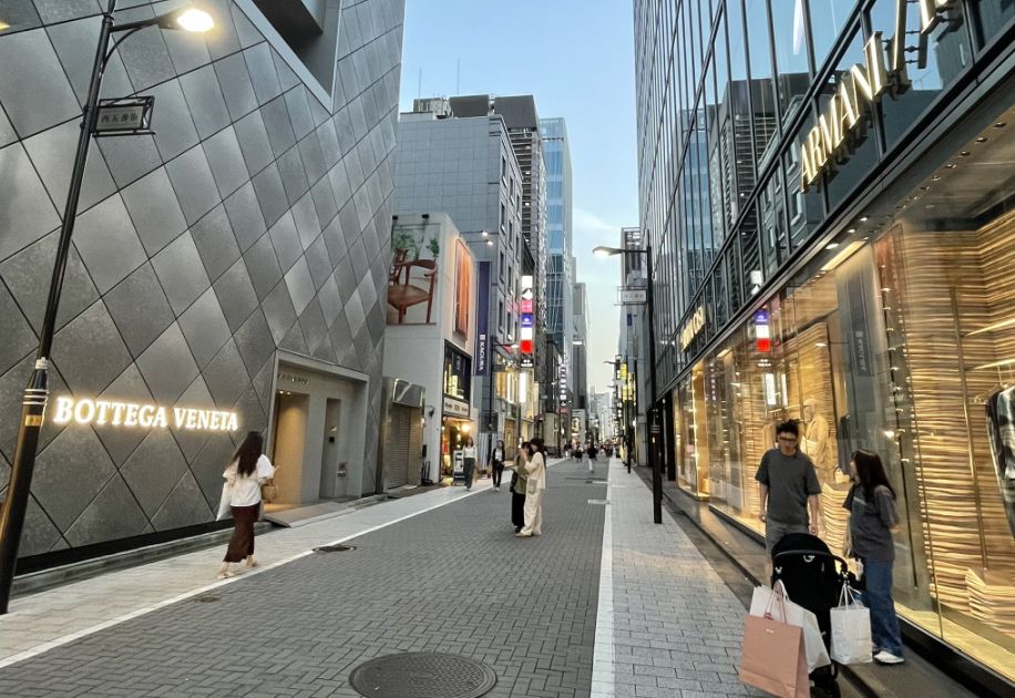 Luxury brands, global fashion, cutting-edge technology, and Japanese precision, all lined up on clean, wide sidewalks where people stroll slowly, window-shopping instead of rushing.