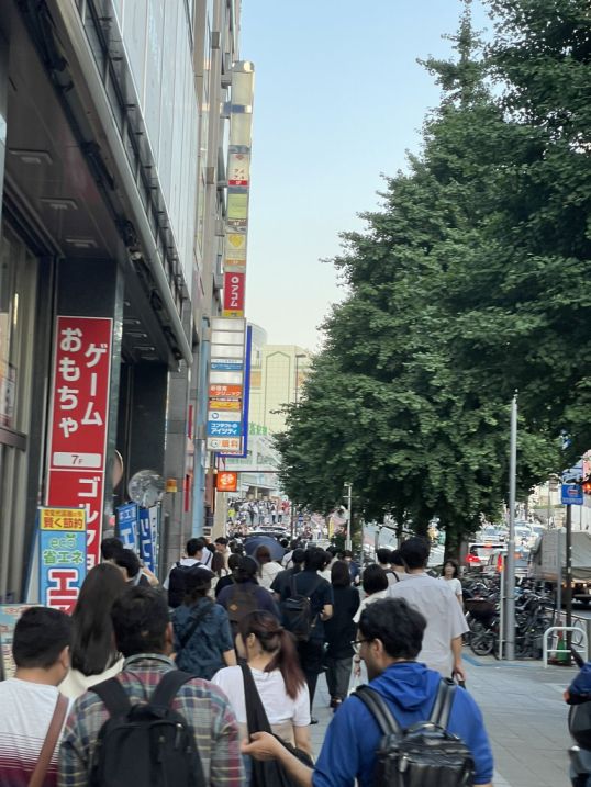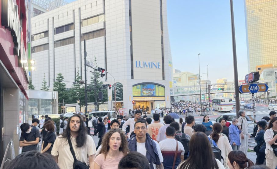 Passing Shinjuku Station, the color only intensified. Huge red signs climbed the sides of buildings, stacked one above another. The streets felt loud even without sound.
