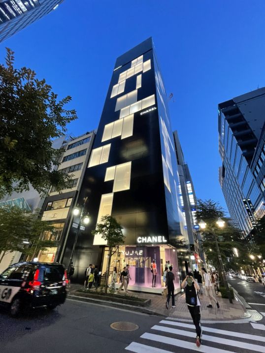 Bottega Veneta is situated directly on Ginza Suzuran Street. It is the brand's largest flagship store in Asia and serves as a major architectural landmark in the district.