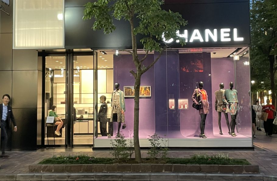 The Fendi store sits right on a prominent corner, designed to stand out like a piece of modern architecture. At night, its glass façade glows softly, and the interior lighting highlights the bags and clothing like they’re in a gallery. Corner locations in Ginza are some of the most expensive retail spots in Japan, so brands like Fendi use bold architecture to make a statement before you even step inside.