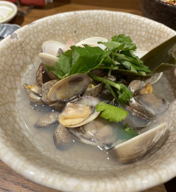 The steamed clams followed, fragrant and sweet, floating in their clear, savory broth, tasting purely of the sea.