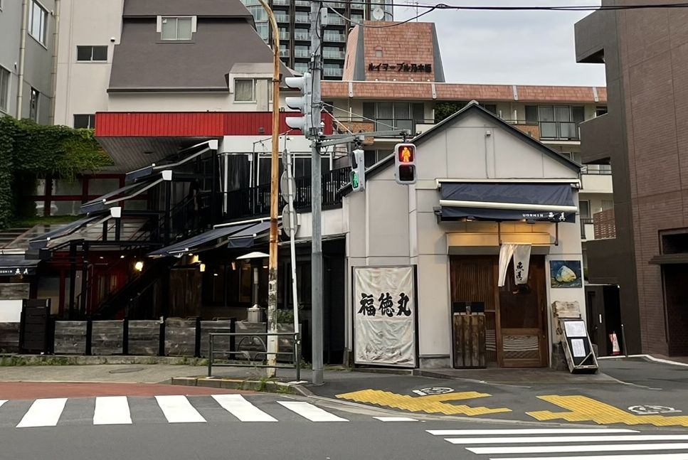 We are heading to Uoshin Nogizaka for dinner, a small but very well-known seafood restaurant famous for the freshness of its fish. From across the street, the restaurant almost disappears. It is tiny, tucked modestly between two huge modern office buildings. Compared to the towering glass and steel around it, Uoshin looks like a hidden secret, the kind of place you would walk past unless you knew exactly what you were looking for.