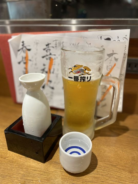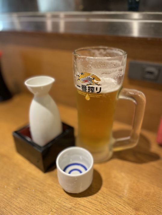 Sake and beer to start the meal.