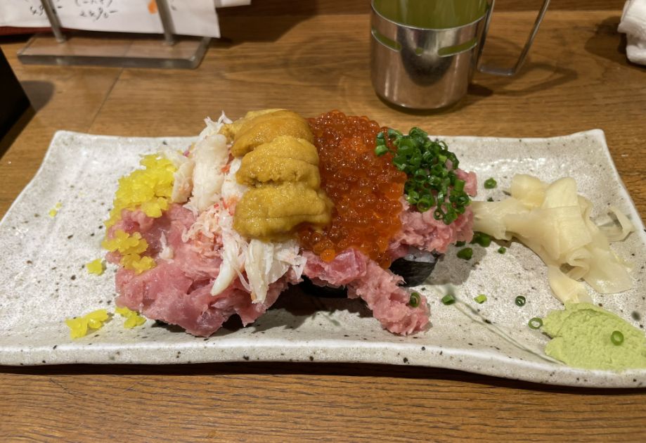 First came their famous cucumber roll, but this was no ordinary roll. A cool, crisp cylinder of cucumber replaced the rice, topped generously with salmon roe, finely chopped tuna, sweet crab meat, and a crown of creamy sea urchin.